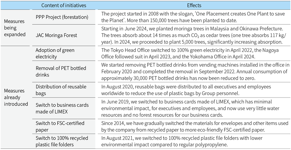Initiatives for GHG Reduction and Absorption