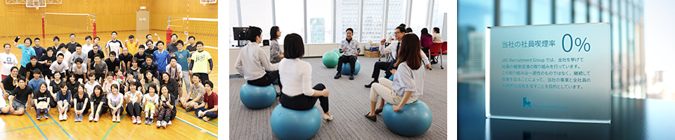 As a global company that supports the growth of people and companies through recruitment, JAC Group aims to be ‘No. 1 in the world in terms of quality and profitability’. In order for us to be a meaningful presence that supports the growth of companies and people, we must first of all be healthy in mind and body and be able to act with a calm mindset at all times. We believe that our consulting value can be enhanced by continuing to maintain and improve our health, and have established priority themes for health management so that all employees can work on maintaining and improving their health on their own initiative. To become a company where each and every employee can be happy and active, we will promote the creation of a safe and secure working environment.