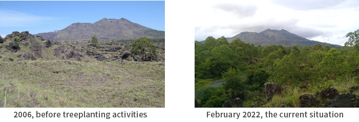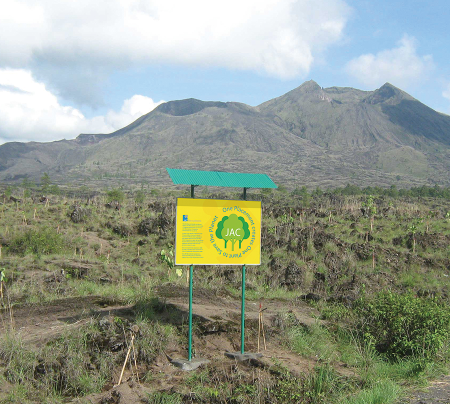 Since 2008, the JAC Group has been involved in reforestation activities in Bali, Indonesia, through the non-profit organization NPO Asian Green Forest Network (AGFN), to restore the original aquifer and watershed function* of the forest by planting indigenous tree species such as ampupu (Eucalyptus urophylla), candlenut (Aleurites_moluccanus) and melina (Gmelina arborea) in the devastated land that was turned into grassland by the eruption of Mount Batur.