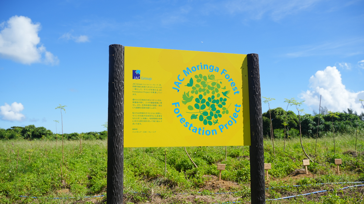 そして2024年から、沖縄の宮古島とマレーシアにて、スギの10倍以上のCO2吸収力を持つモリンガの植林による森林再生の取り組み「JACモリンガの森」プロジェクトを新たに開始し、さらなる地球温暖化対策と現地の生態系保全、地域活性化に取り組みます。